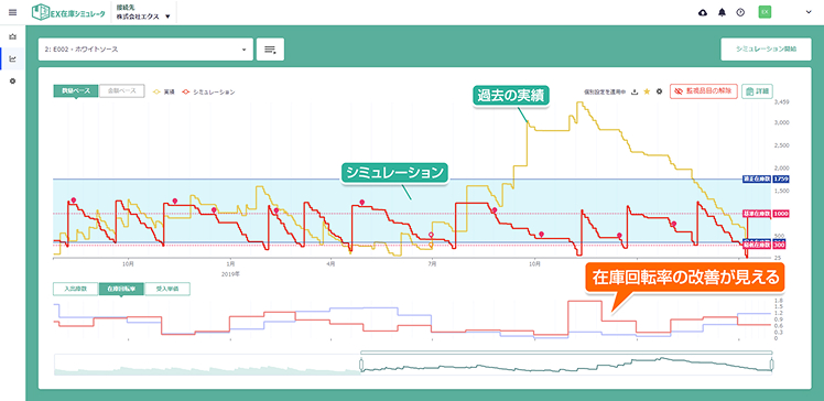EX在庫シミュレーションサービスは、安全在庫の最適値をシミュレーションし、実際の需要予測や供給状況に基づいて、最適な在庫レベルを見定めるサービスです。