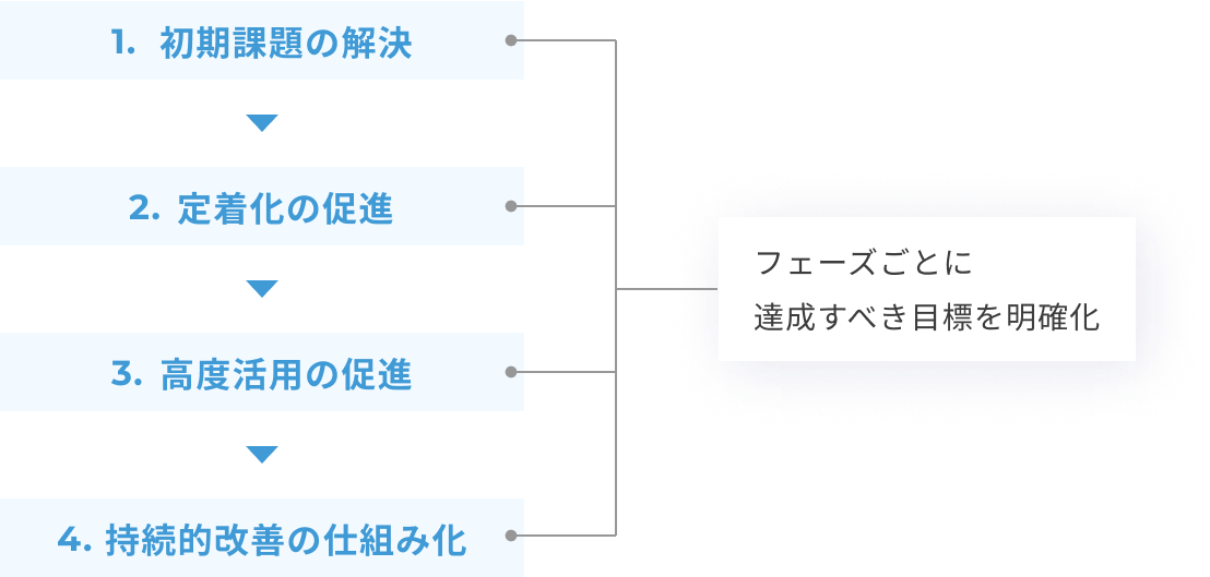 導入して終わりではなく、社内に定着し有効活用するまでお客様のすぐそばで、伴走し続けます。